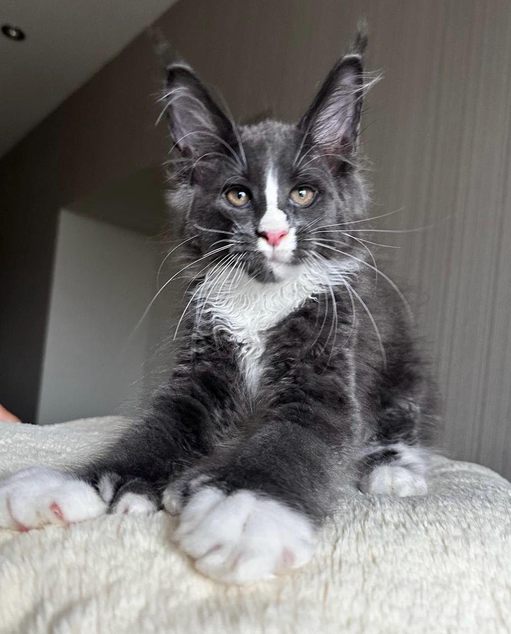 "I couldn't be happier with the furry addition to our family from Giant Paws Coons! Our little Maine Coon, Fluffy, is an absolute joy. From the first inquiry to bringing Fluffy home, the process was seamless. Thanks, Giant Paws Coons for such a delightful experience!"